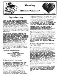 | Canadian Insulator Collector - February 1992 - Page 1 | |