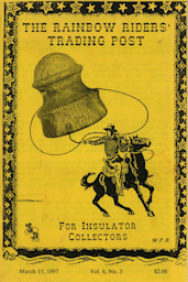 Rainbow Riders Trading Post was a magazine published monthly by Ron & Patti Norton from November 1991 to September 1997. The magazine's main goal was to encourage insulator trading rather than the hobby's trend towards buying/selling, but it also had a significant amount of high quality article content.